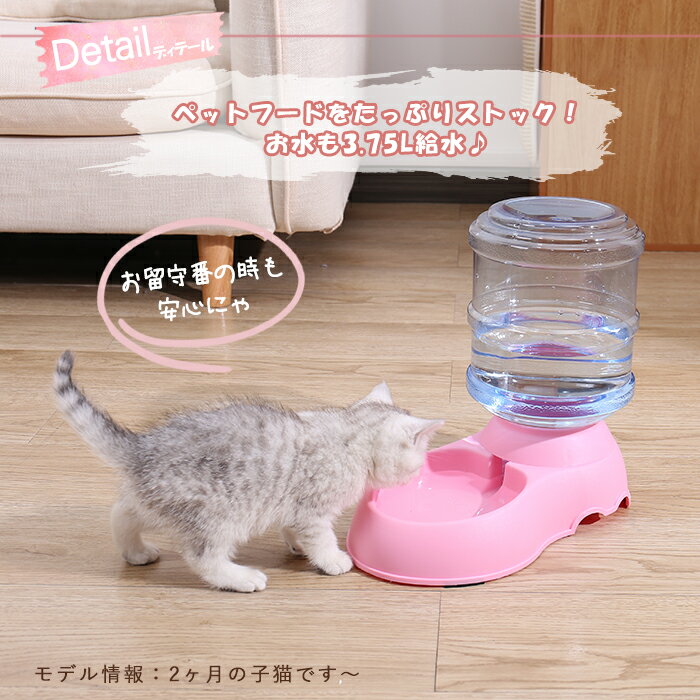 【スーパーセール期間半額】猫 犬用 自動給水器 給餌器 水飲み ペット用品 フードキーパー ペットボトル 自動補給 旅行 外出 給水タンク ペットフード 3.75L