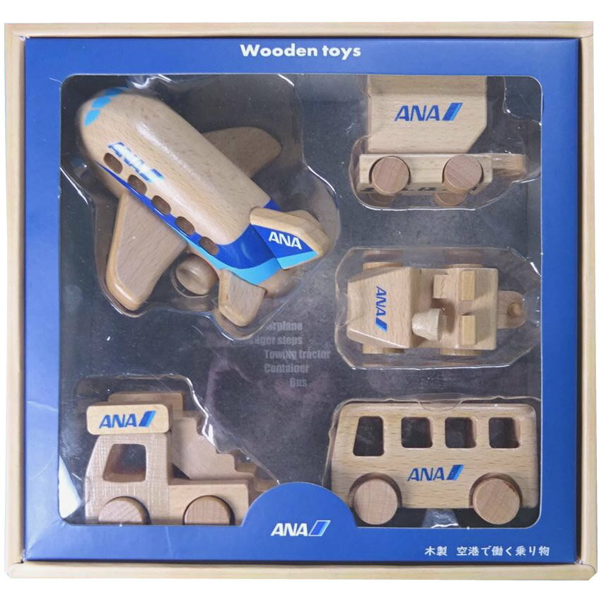 エアプレーングッズ 空港で働く乗り物 木製ひこうきセット ANA MT445【玩具】
